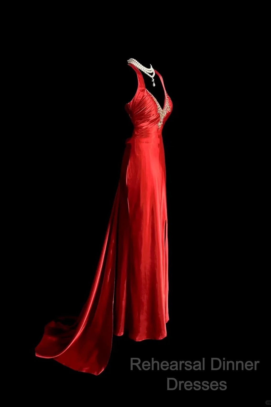 Vintage Mermaid Spaghetti Straps Satin Red Semi Formal Prom Gown Fairy Semi Formal Prom Dresses