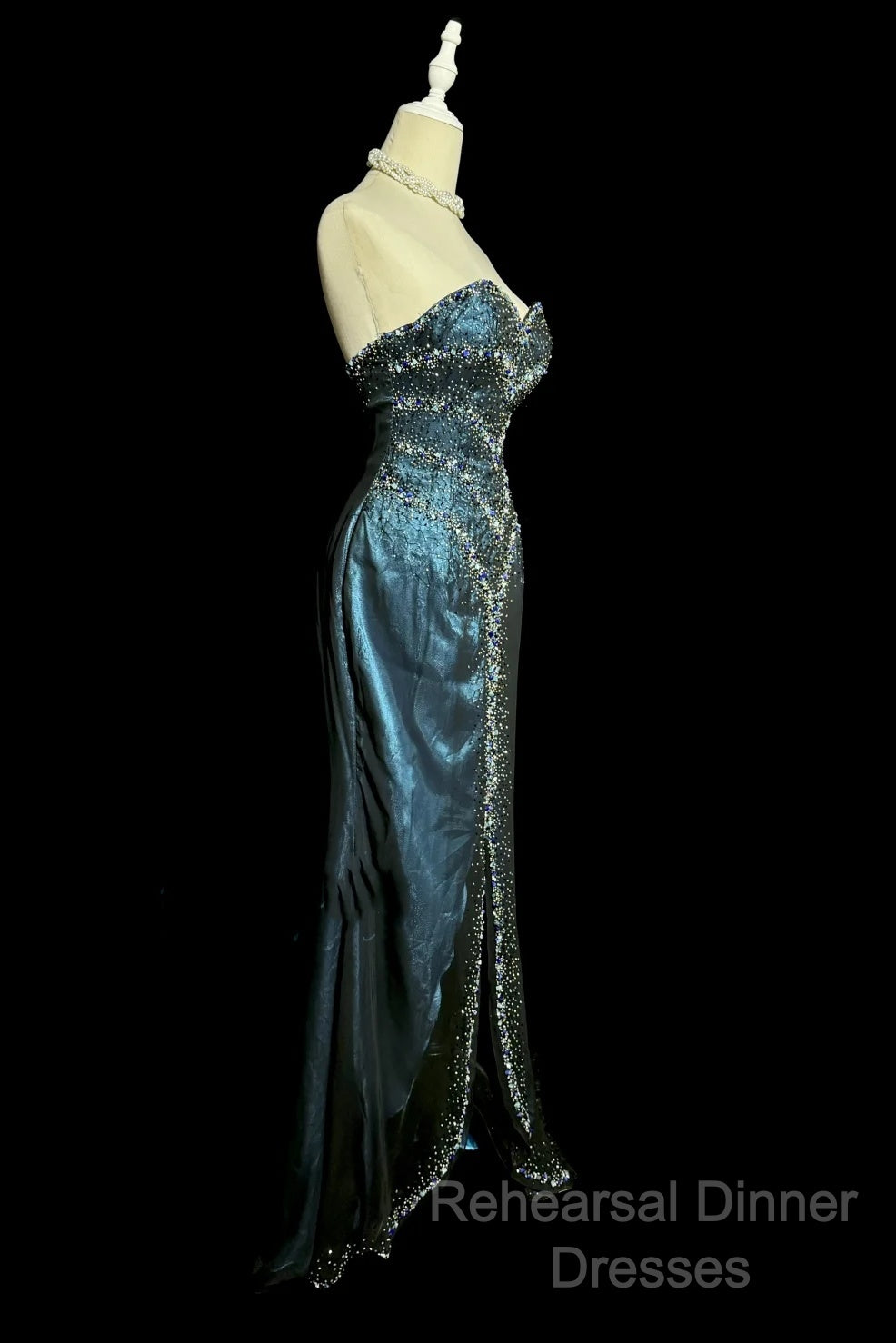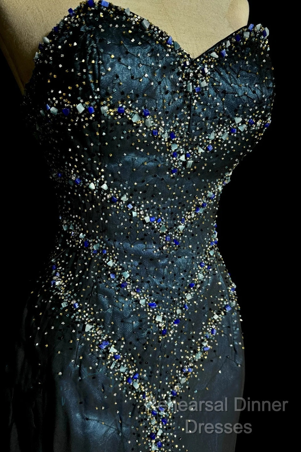 Vintage Mermaid Sweetheart Sleeveless Long Blue Slit Semi Formal Prom Gown Fairy Semi Formal Prom Dresses