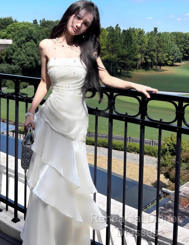 White Enchanted Semi Formal Prom Dress For Party&Birthday&Graduation-Ruffled Layered Fairytale Evening Dress