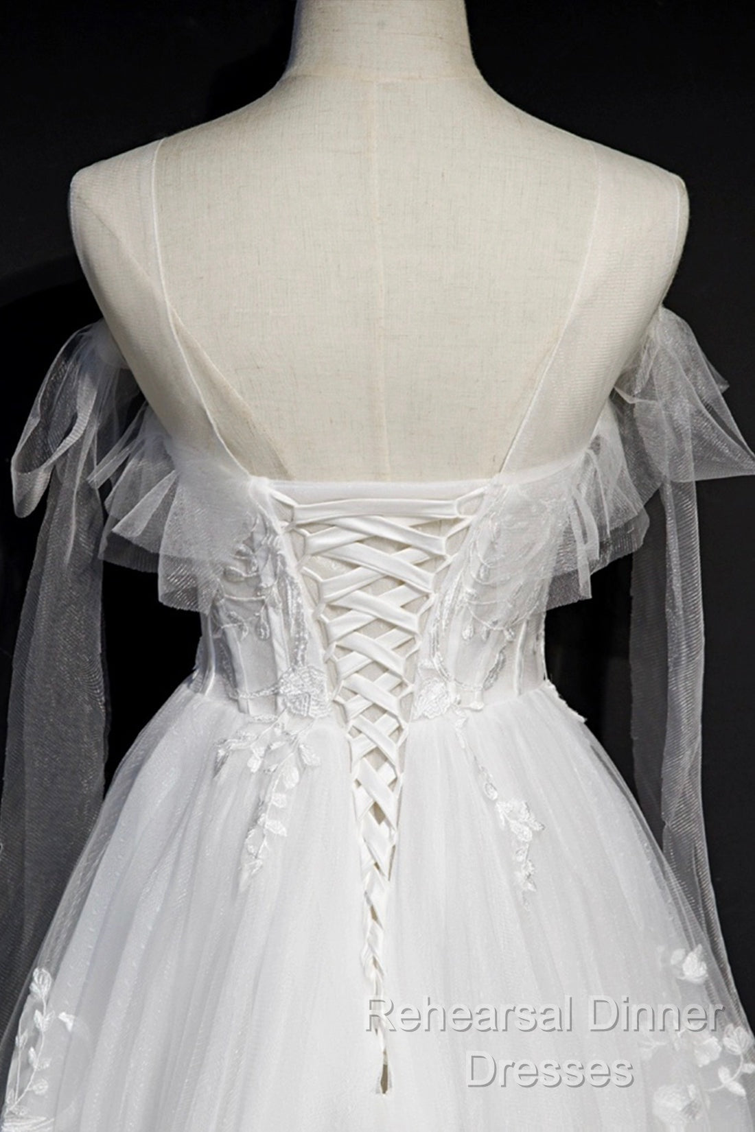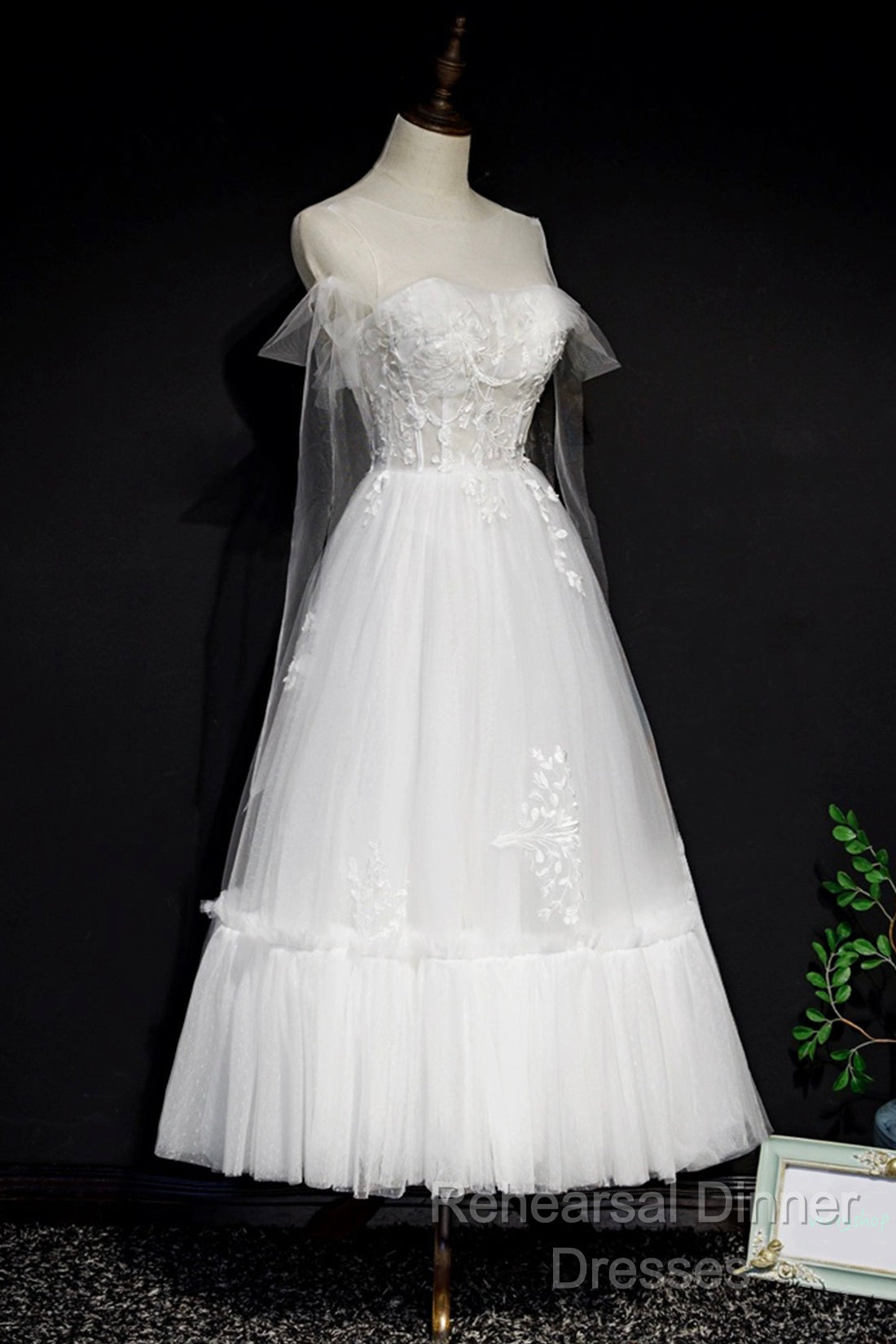 White Lace A-Line Tea Length Semi Formal Prom Dress