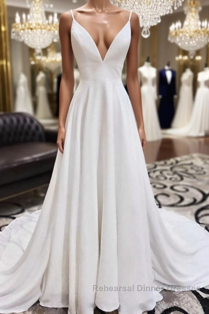 White v neck chiffon long Semi Formal Prom Dresses, white lace evening Dresses