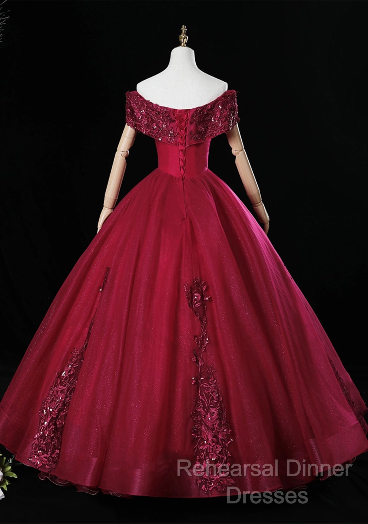 Wine Red Ball Gown Sweetheart Off Shoulder Long Party Dress, Wine Red Sweet 16 Dress