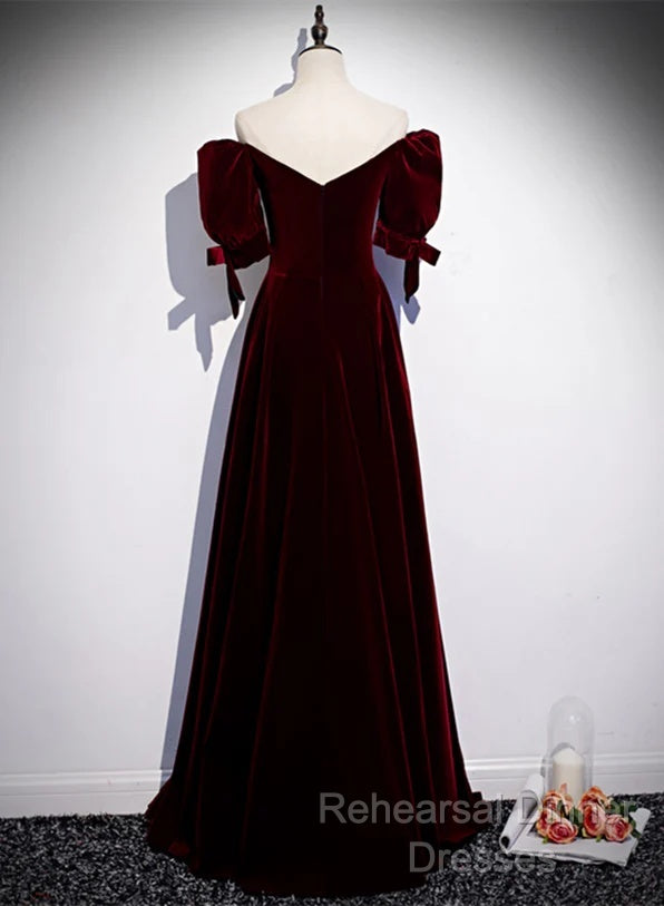 Wine Red Velvet A-Line Simple Party Dress, Wine Red Velvet Long Semi Formal Prom Dress