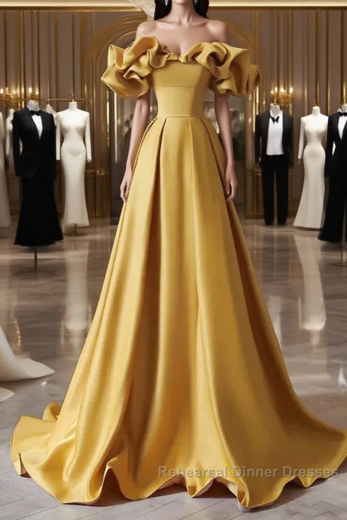 Yellow Off Shoulder Long Formal Evening Dresses Semi Formal Prom Dress